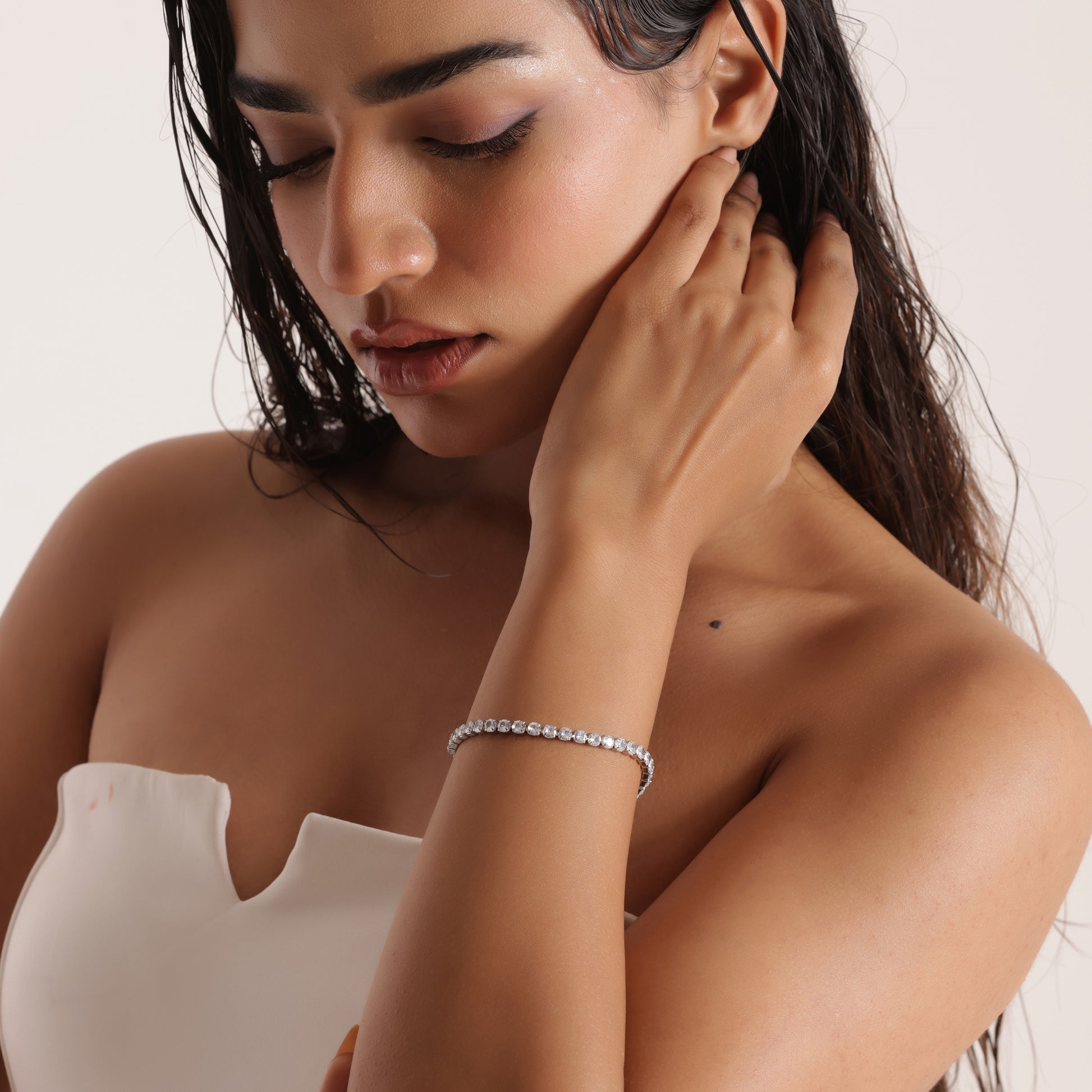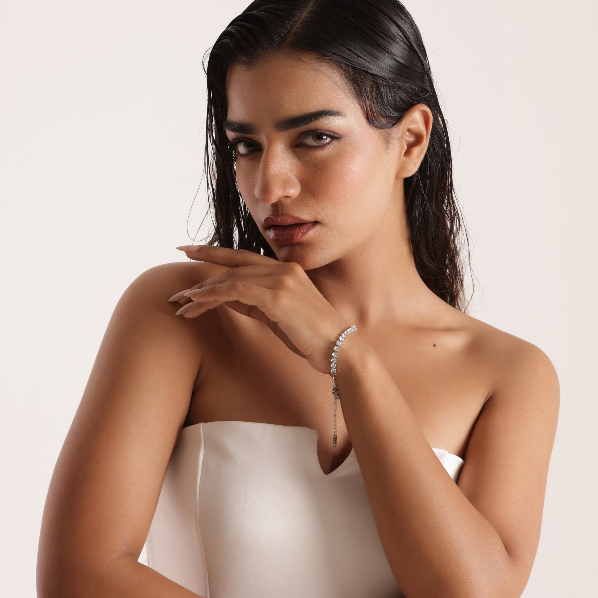 3mm Silver-Plated Tennis Bracelet features brilliant round-cut stones in an elegant design measuring 18 cm with a 5 cm extension for a perfect fit. Crafted with premium 316L silver plating, it is anti-tarnish, waterproof, and sweatproof, ensuring lasting shine and durability β ideal for daily wear and special occasions.