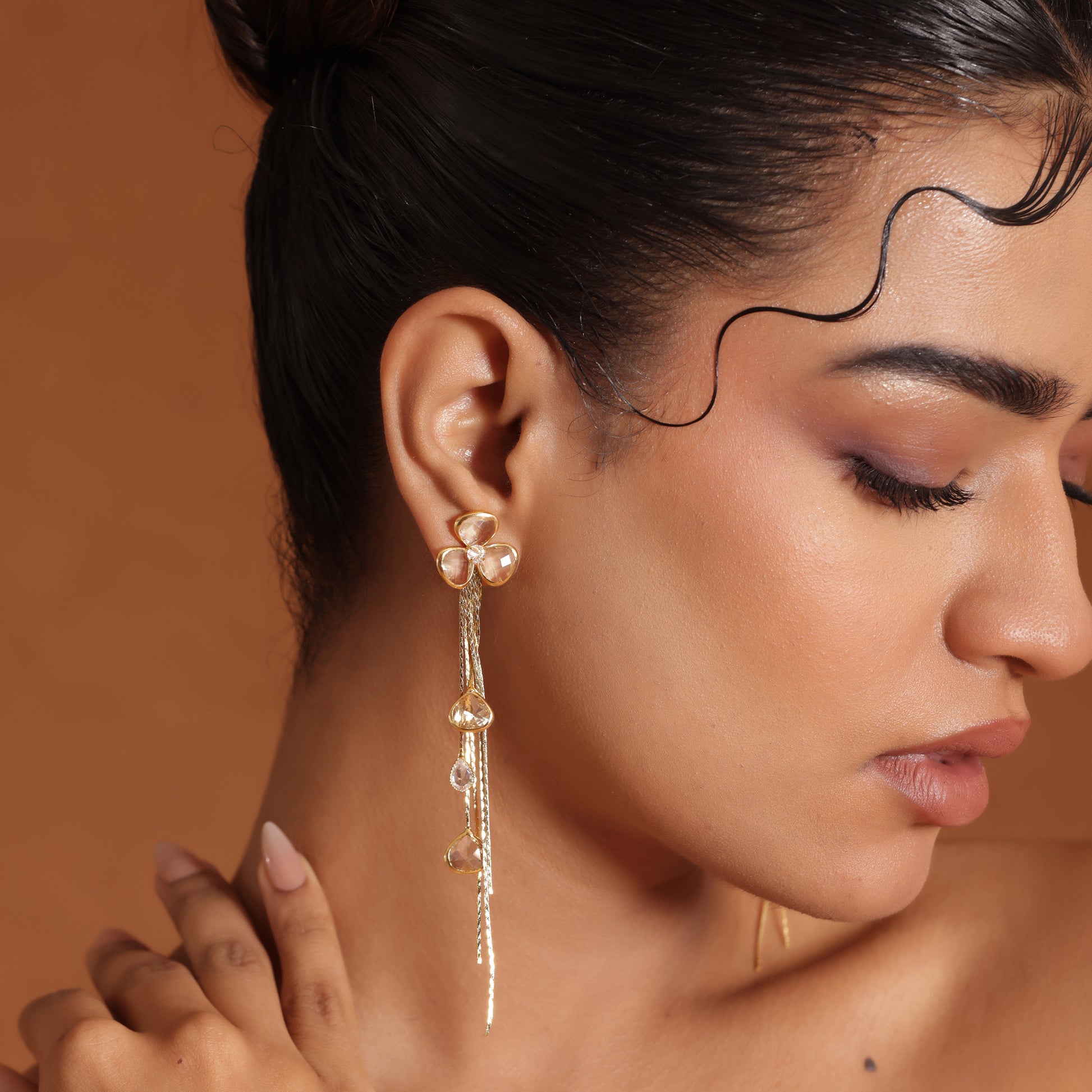 These Earrings feature a high-premium 316L gold plating that adds a luxurious touch, perfect for parties and special occasions. They are anti-tarnish, waterproof, and sweatproof, ensuring long-lasting shine and rust resistance. Designed for pierced ears, these elegant danglers are ideal for both daily wear and gifting.