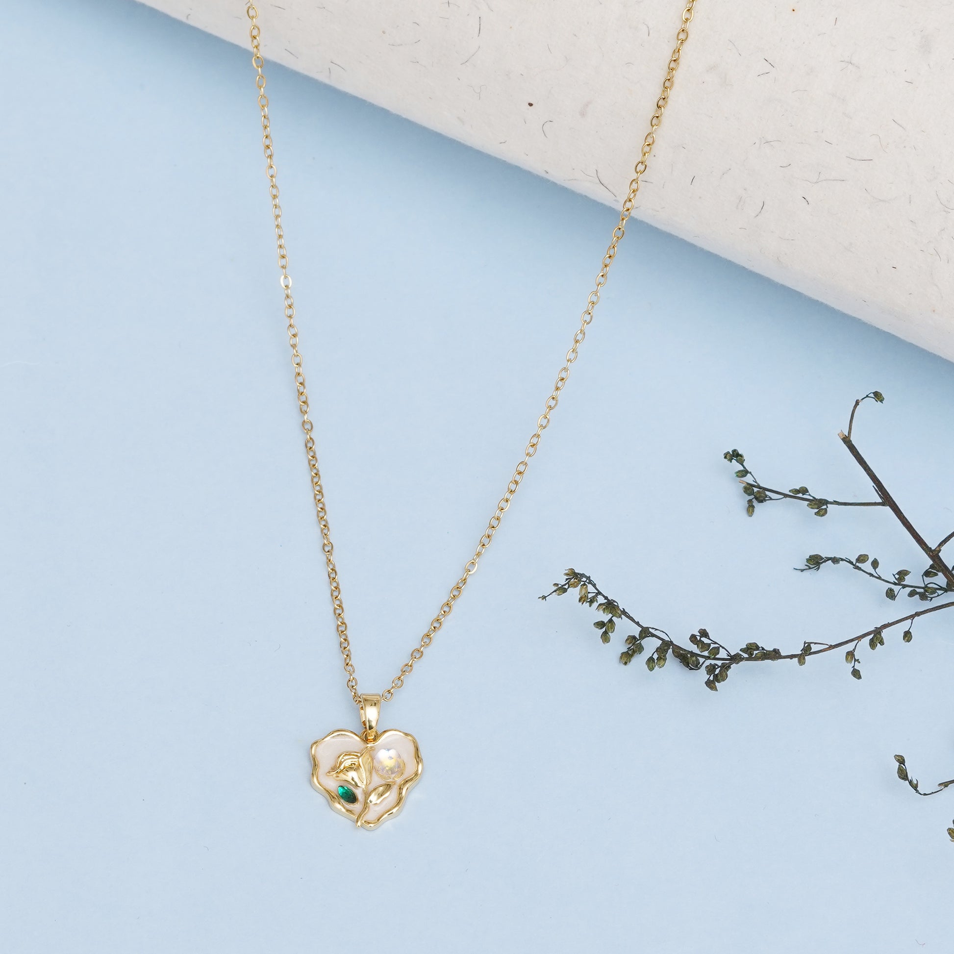Flower Love Pearl Neck Chain Pendant features an elegant floral design accented with a lustrous pearl on an 18 cm chain. Crafted from premium stainless steel with a polished finish, it is anti-tarnish, waterproof, and sweatproof, ensuring lasting shine and durability — perfect for daily wear and gifting.