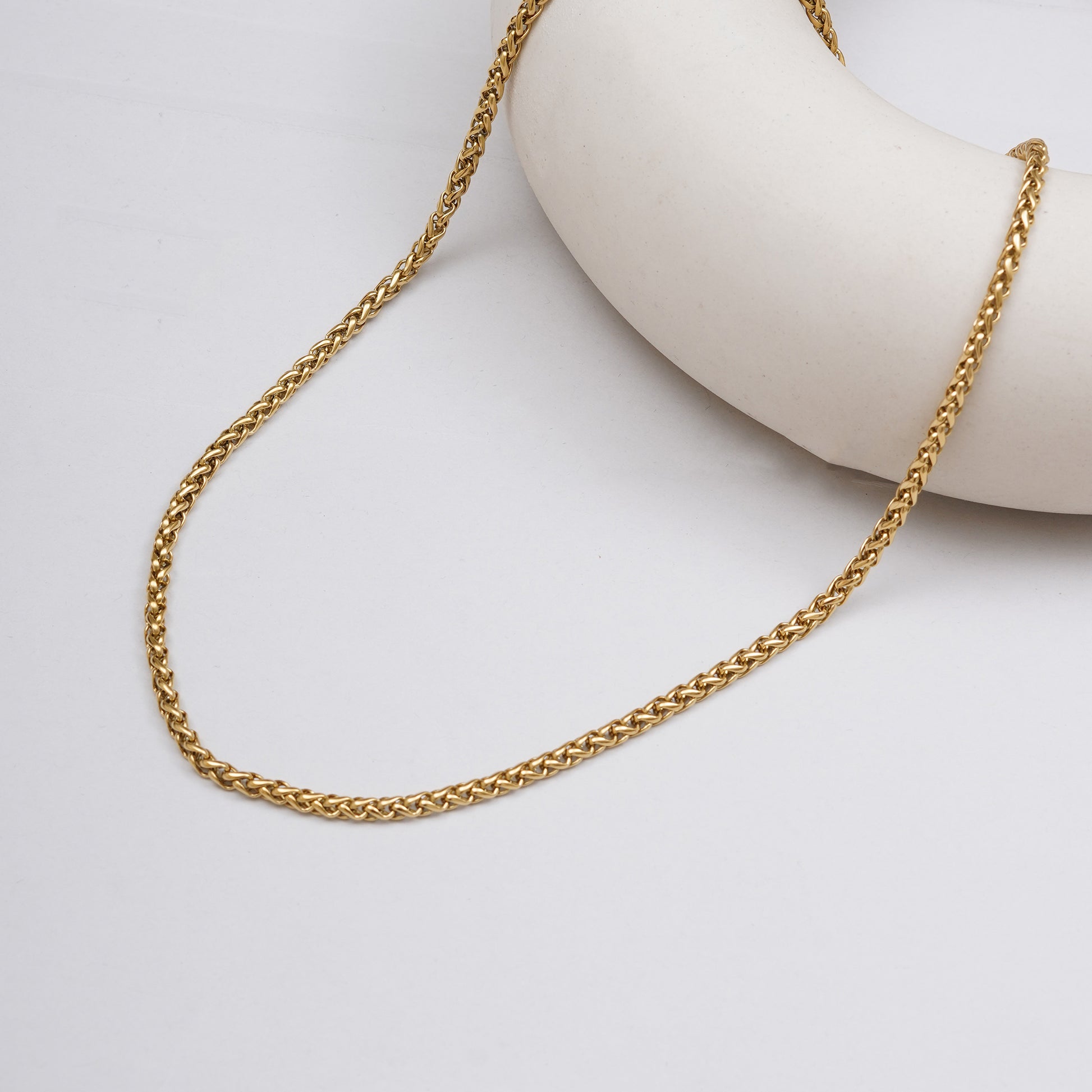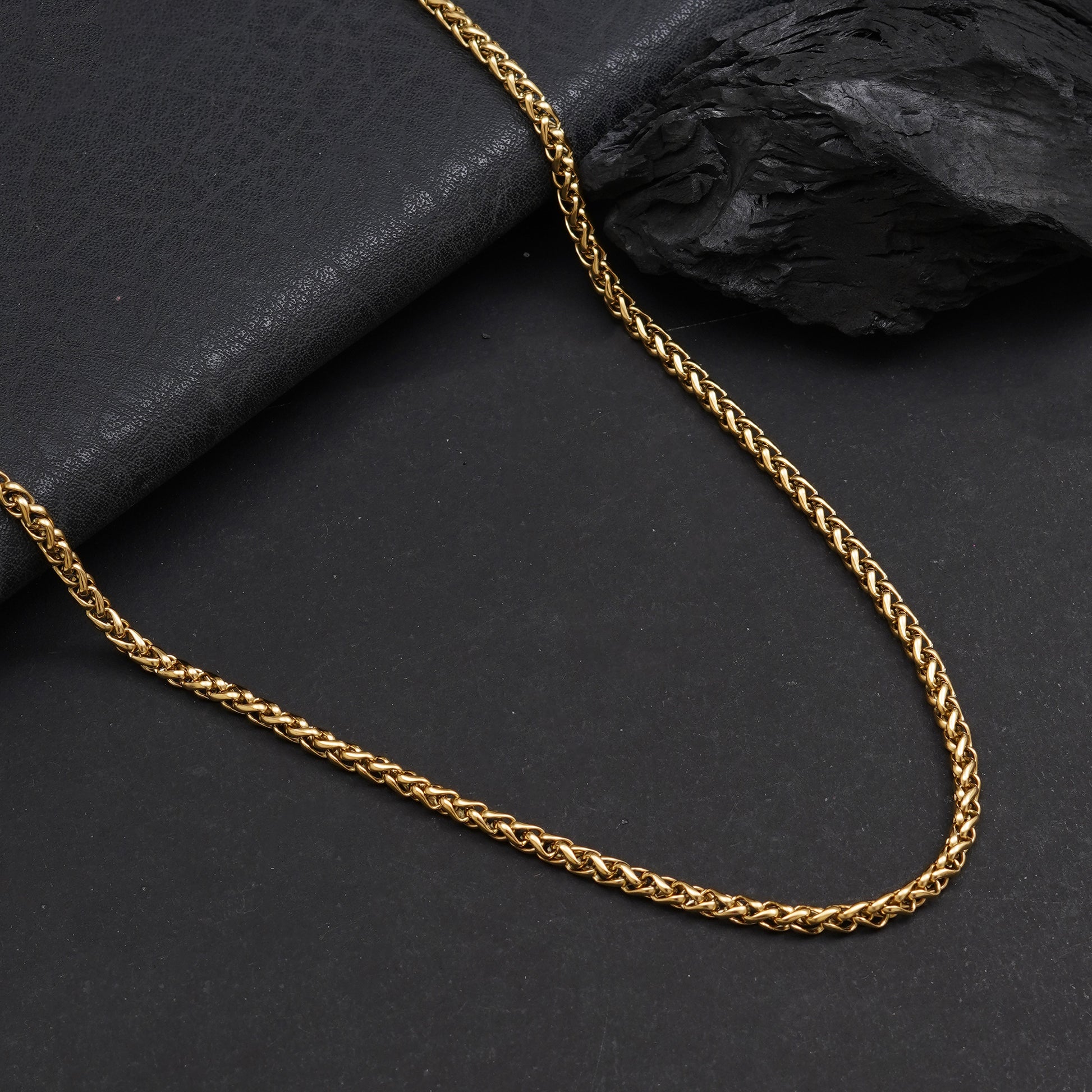 Gold Link Neck Chain features a classic 3 mm design with a 26 cm length, crafted from premium stainless steel with a luxurious gold plating. It is anti-tarnish, waterproof, and sweatproof, ensuring lasting shine and durability — perfect for daily wear and elegant styling.
