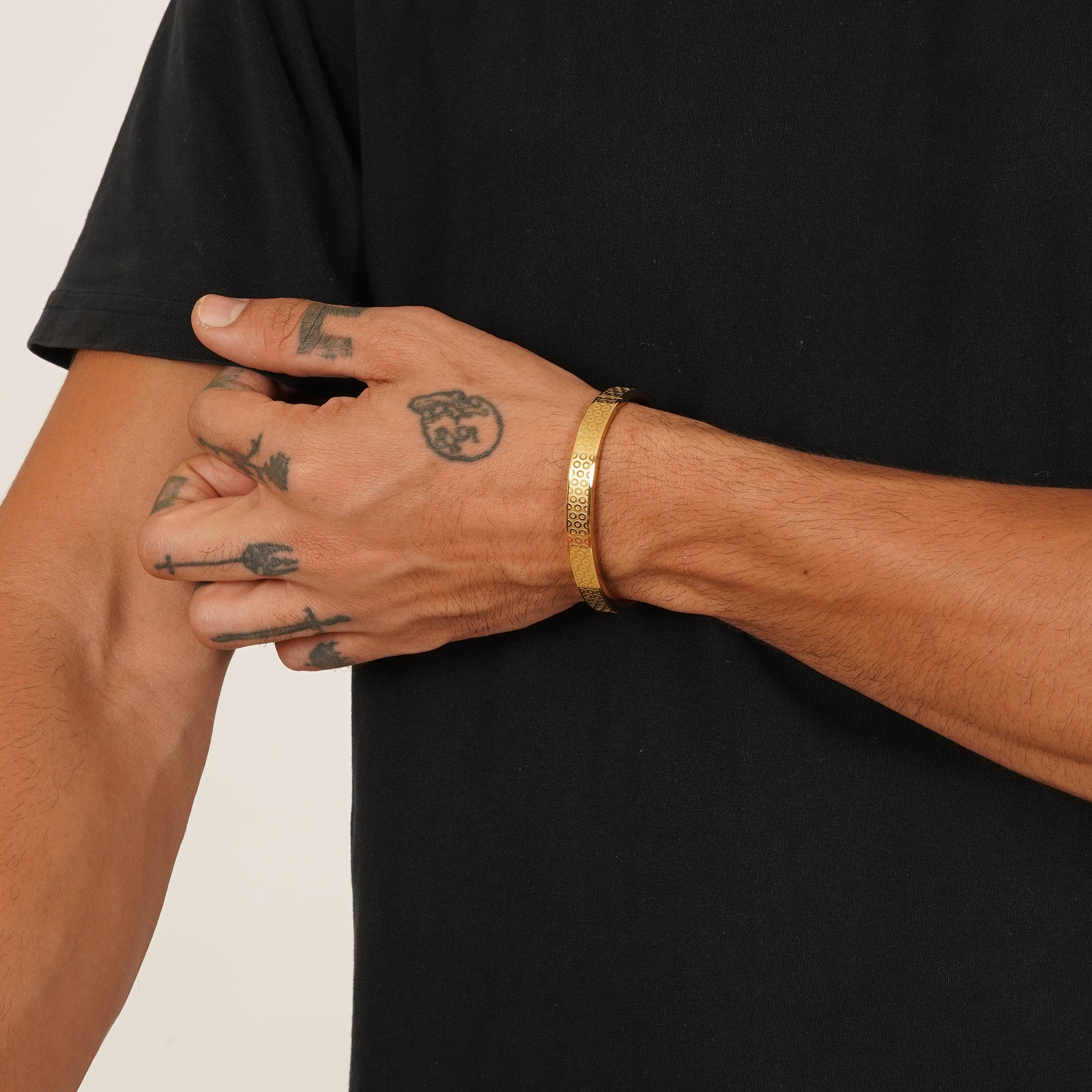 Crafted with high-quality stainless steel, this mens bracelet is waterproof, anti-tarnish, rust-resistant and durable, making it perfect for daily wear. The elegant Gold Plated design adds a premium and fashionable touch that matches both casual and formal outfits. The bracelet features a comfortable size of 6.5 cm width and 5.28 cm height, along with a slim 0.76 cm height and 0.25 cm thickness, giving it a sleek and minimal look on the wrist.