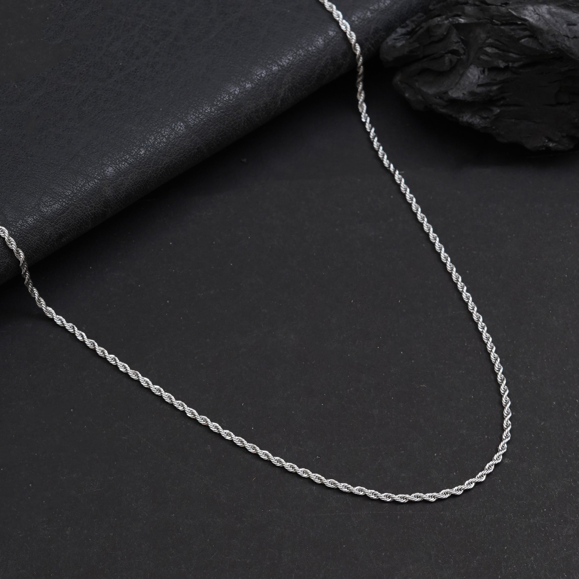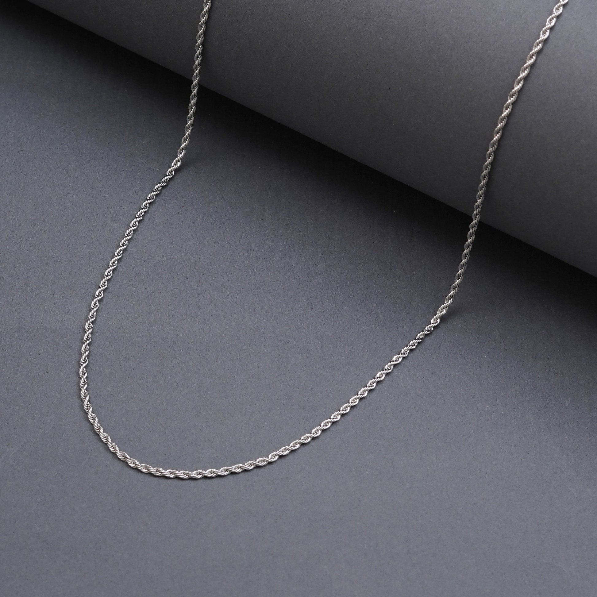Silver Rope Chain features a bold 3 mm design with a 24 cm length, crafted from premium stainless steel in a polished silver finish. It is anti-tarnish, waterproof, and sweatproof, ensuring long-lasting shine and durability β perfect for daily wear and versatile styling.