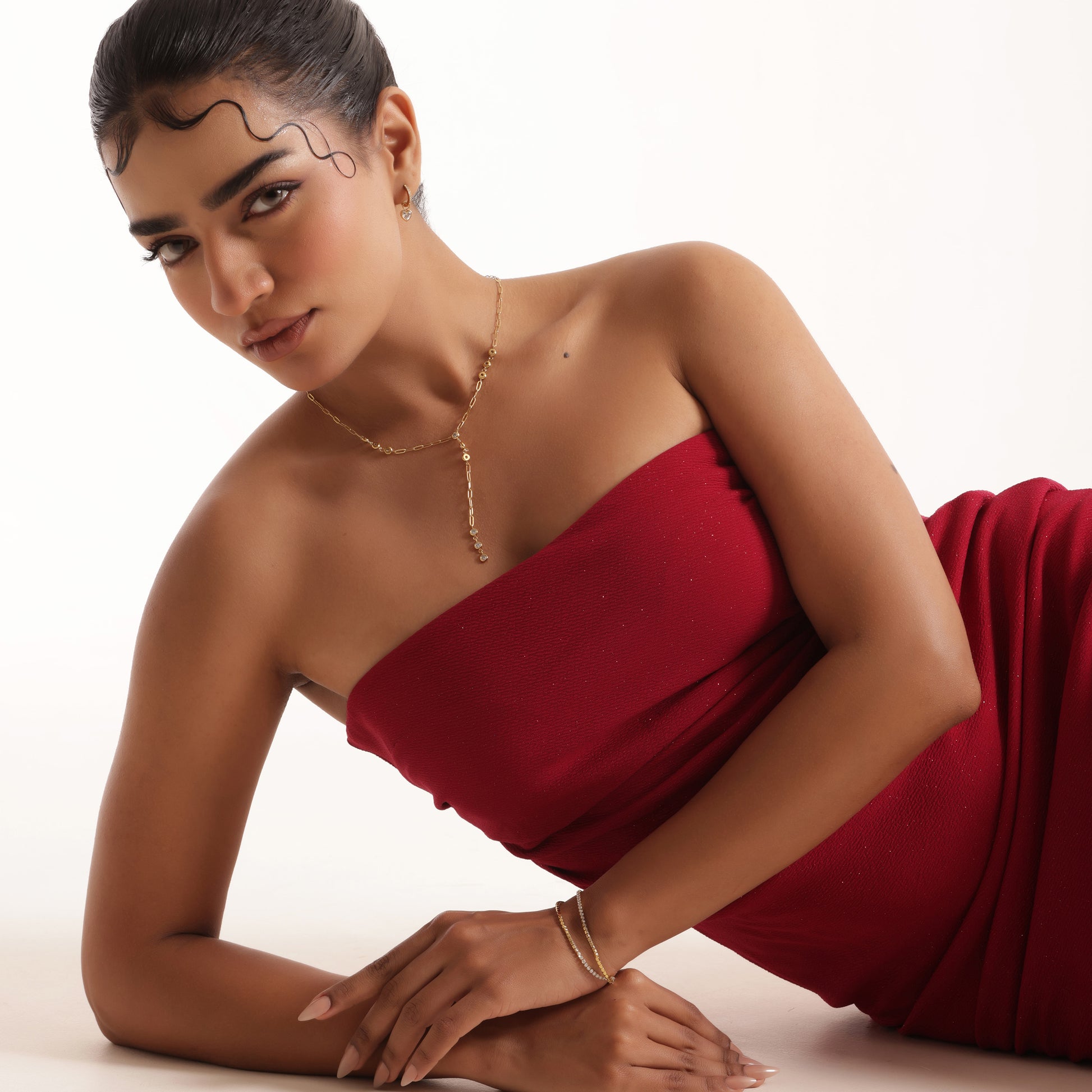 Sparkling Stone Y-Chain Necklace features an elegant drop design adorned with shimmering stones on a 30 cm chain. Crafted from premium 316L stainless steel with luxurious 18K gold plating, it is anti-tarnish, waterproof, and sweatproof, ensuring lasting shine and durability — perfect for daily wear and special occasions.
