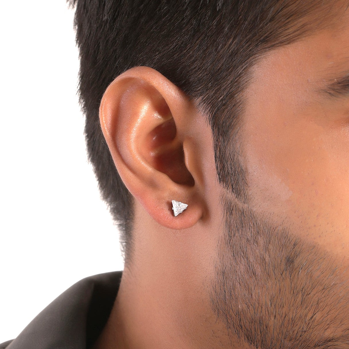 Triangular White Stone Silver-Plated CZ Earrings
