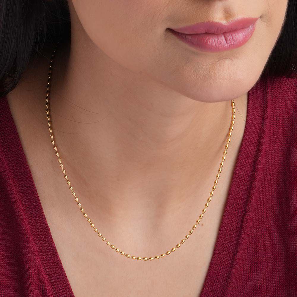 Beaded Neck Chain Pendant features a minimal yet elegant design with delicate bead detailing on an 18 cm chain. Crafted from premium stainless steel with a polished finish, it is anti-tarnish, waterproof, and sweatproof, ensuring lasting shine and durability — perfect for daily wear and gifting.